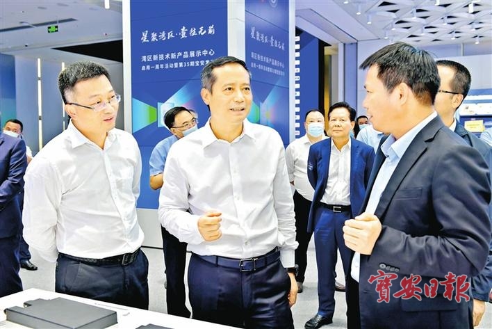 姚任等区领导参观湾区新技术新产品展示中心。