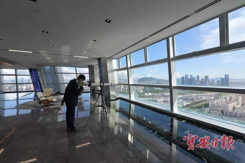 仪式后,现场嘉宾来到恒明珠国际金融中心60楼的云端展示厅参观,踏出电梯厅360度全景观无遮挡的视野让人心旷神,展示厅西南向是前海与宝安中心区组成的湾区景象,东南向远眺深圳湾、南山科技园,东北向目触羊台山森林公园、西丽水库,西北向有铁仔山、平峦山公园与城市景色交相呼应。嘉宾纷纷驻足,拿出手机记录下壮美景观。