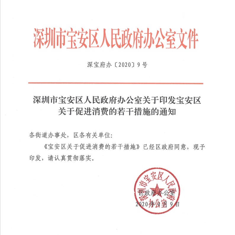 根据《宝安区关于促进消费的若干措施》