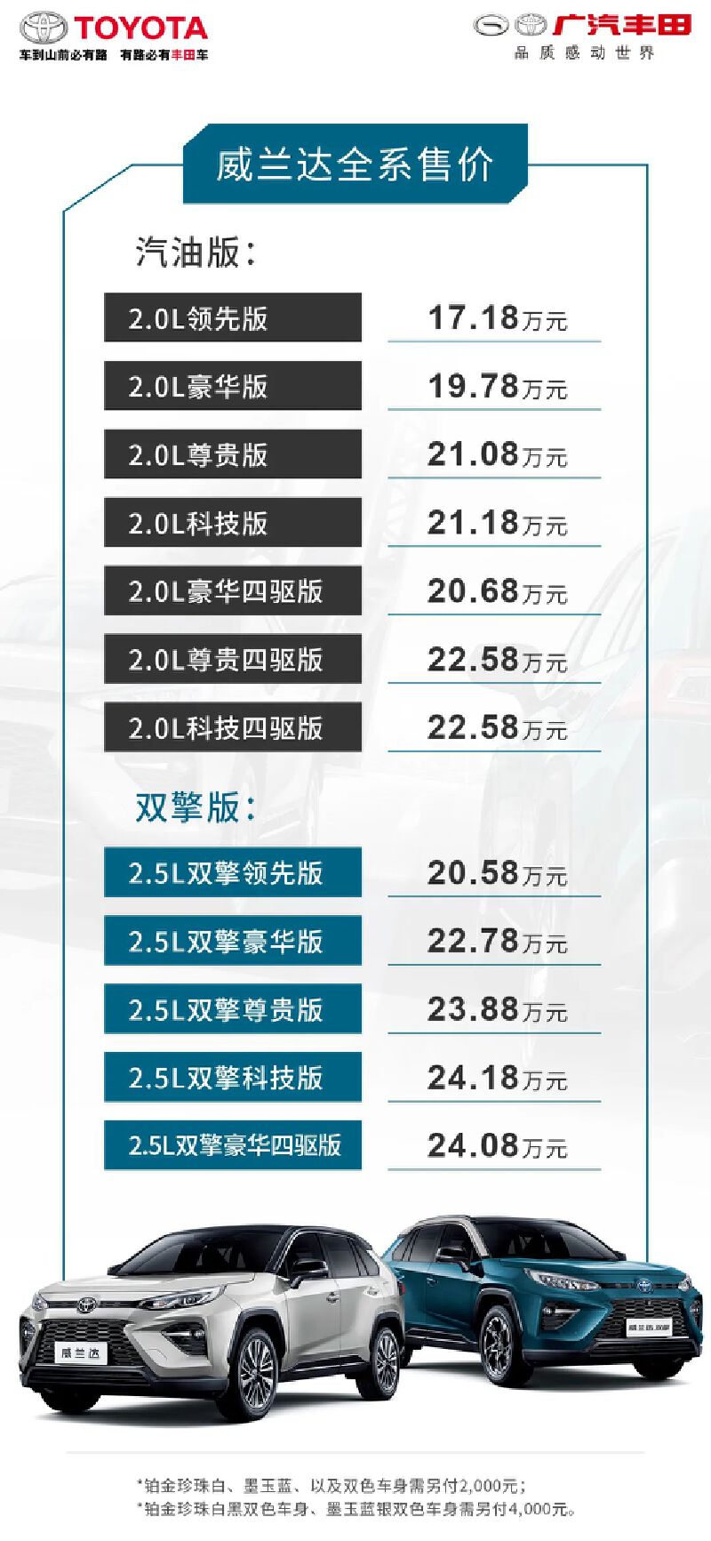 搭载2种动力3种四驱选择