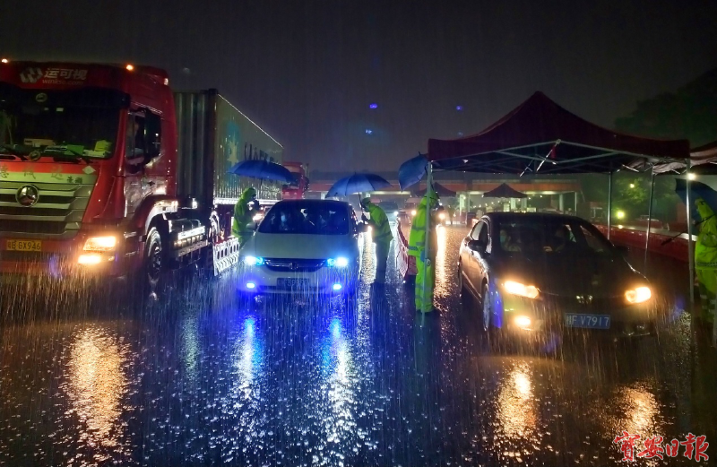 抗疫一线的雨中坚守