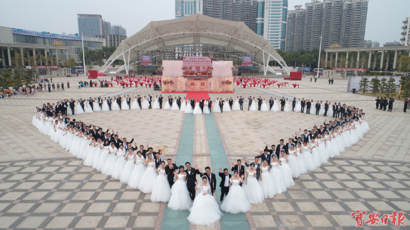 首届“爱在宝安·感恩有你”职工集体婚礼在市民广场开展