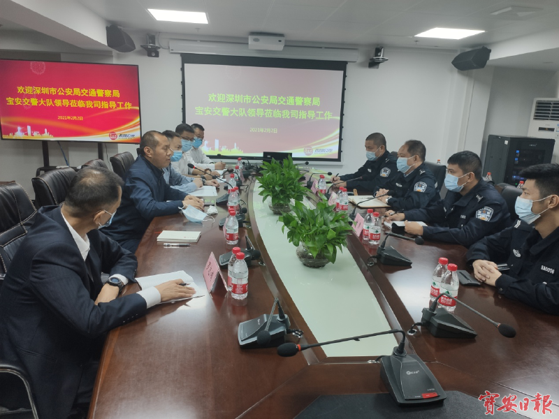 在听取西部公汽二分公司安全工作报告,参观完西部公汽智慧监控系统后,宝安交警大队副大队长庄帝海表示,宝安交警大队会定期将行业交通违章违法行为及典型事故案例材料共享给西部公汽二分公司,通过观看典型事故案例视频、安全警示教育片、事故案例剖析、防御性驾驶培训等形式开展警示教育活动,切实深刻吸取违章和事故教训,深入查找违章和事故原因,教育广大公交驾驶员深刻吸取教训,进一步提高防范意识和技能,通过“警企联”平台,实现警企间交通信息共享,预防整改措施共通,道路交通安全共创,为强化辖区道路交通安全贡献力量。