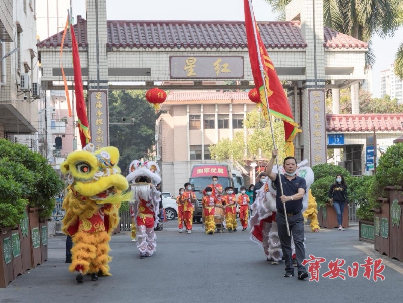 此次慰问,松岗街道邀请了由学生组成的锣鼓队和醒狮队来到社区。现场锣鼓喧天,营造了 “一人当兵,全家光荣”的浓厚氛围,增强了军人及其家庭的荣誉感,并进一步激发了广大青年踊跃参军的积极性。