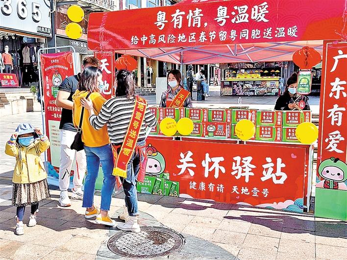 “因为疫情原因,国家号召就地过年,非必要不返乡,天地壹号作为广东的饮料企业,向留在深圳过年的这些外来建设者,献上一份爱心,让他们感受到来自广东的温暖。”一位现场的天地壹号负责人告诉记者,除深圳外,天地壹号还将同步在广州、东莞、佛山、中山、珠海、惠州6个珠三角城市22个区镇的中心地带开设关怀驿站,为留粤人员,特别是户籍所在地为中高风险地区的留粤人员送上3万份健康大礼包。