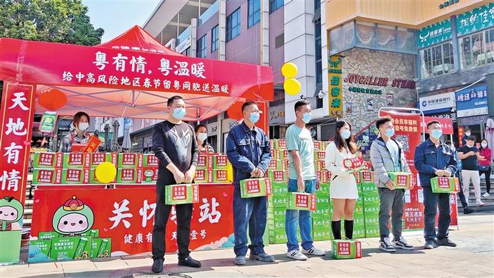 “虽然我们和孩子在深圳,但父母都在老家,所以每年春节的团圆更珍贵,今年政府号召留深过年,我们还担心父母太牵挂,不好理解,结果孩子姥爷直接电话说,就在当地过年,不要回来给家乡的疫情防控增加负担。”在龙华区大浪商业中心,广东本土知名企业天地壹号专门设立了“粤有情粤温暖”关怀驿站,为留深过年,特别是户籍所在地为中高风险地区留深过年的群众送上健康年货。带着孩子在现场领取的谢女士告诉记者,老人家都有这觉悟,自己作为年轻人更要积极响应政府号召,何况,政府以及爱心企业的关怀都让人觉得很温暖。