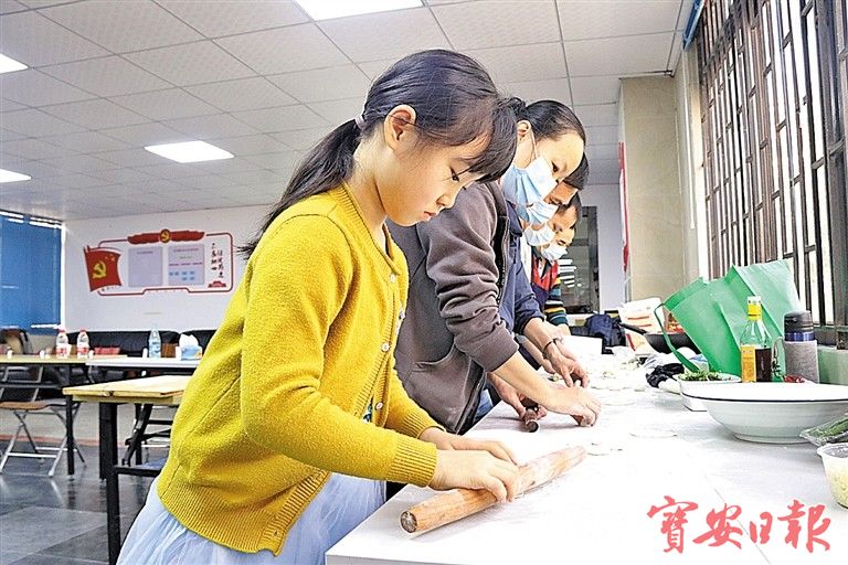 ▲企业员工带上家人一起参加包饺子。