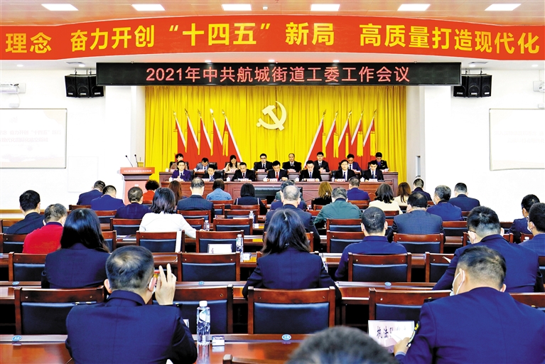 航城街道2021年党工委工作会议现场。