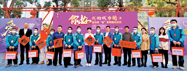 2月6日上午,一场由宝安区党建服务中心主办,新安街道党建服务中心承办,海旺社区党委、鸿荣源壹方中心党委、区义工联协办的“你好!我的城市骑士——留深有‘宝’系列暖心活动”在宝安壹方中心广场举行。现场,文艺演出、“暖心大礼包”、中医健康义诊、写春联、做春花等“十个爱”暖心活动让现场的快递员、外卖小哥收获满满,他们纷纷表示,“十分意外!非常开心!很暖心!”