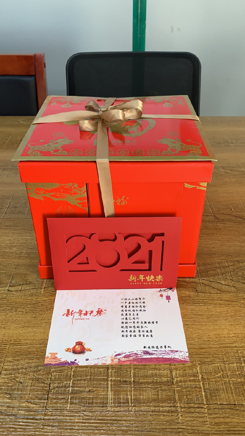 “一张小小的贺卡,一声亲切的问候,带着关怀和思念,满含祝福和鼓励。远亲虽未至,心意已同行,愿您在新的一年健康快乐、幸福吉祥!”这张暖心的新春慰问小卡片,跟着利是糖、坚果、饼干、巧克力、“福”字、剪纸等“年货”礼包送到了新安街道集中隔离人员和居家隔离人员手中。