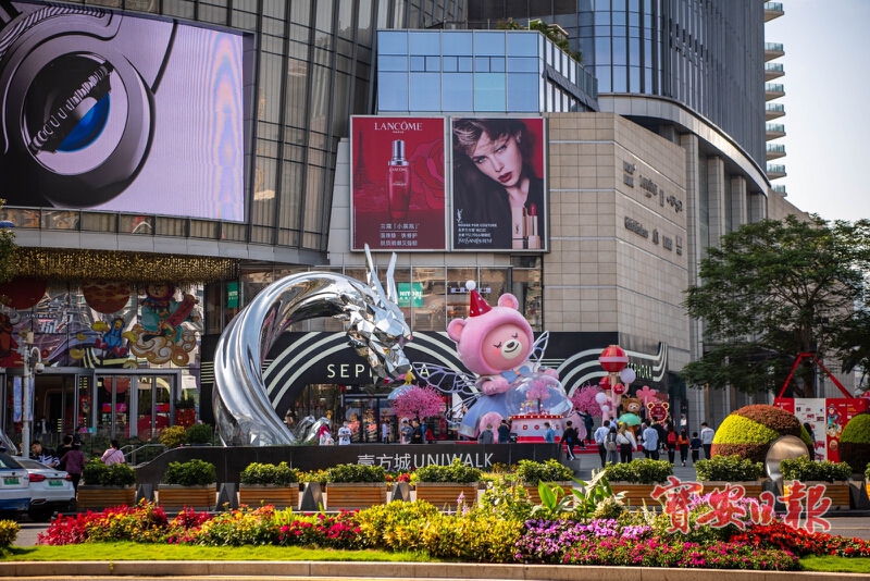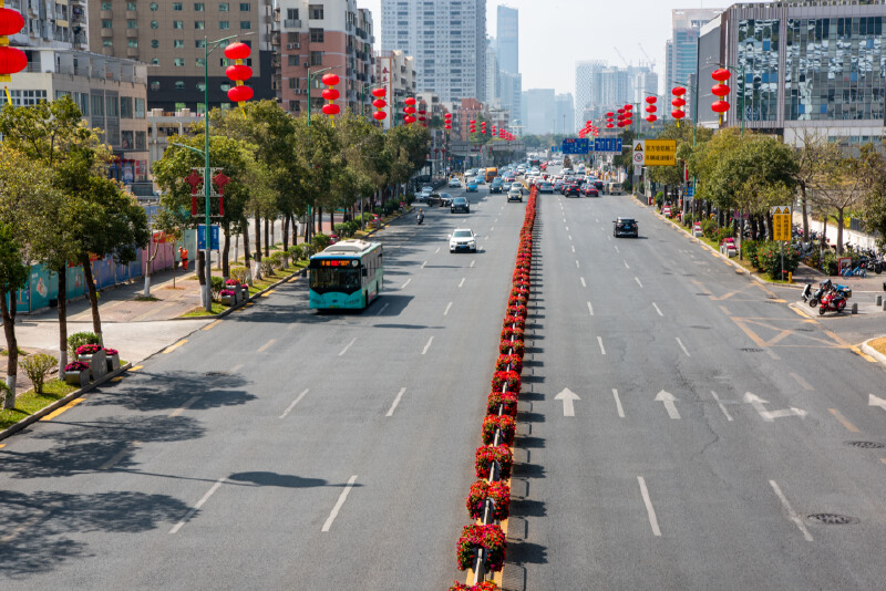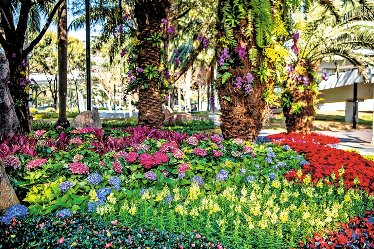 让家园更喜庆更亮丽,新安选取广场、公园、路口等10个主要节点,以及壹方中心、海雅缤纷城、万达广场等大型商业综合体,精心打造不一样的微景观迎春“盛宴”。看,新安广场中间以“圆满之环”为主题花坛,中心绿雕形似圆月,烘托着“得宝而安”的雕塑,寓意“花好月圆”;隔岸公园采用红色剪纸艺术构件配合粉紫红色花卉,中间花坛布置“2021”字样的小品,营造欢快愉悦的迎新气氛;海雅缤纷城对面河道摆放了三只牛年吉祥物,寓意新的一年“牛气冲天”、“干劲十足”;星光璀璨、花团锦簇的中洲天桥则成为创业二路上一道亮丽的风景线……各节点花卉竞相开放,春意盎然,期待市民做好防疫措施,有序前去“打卡”。