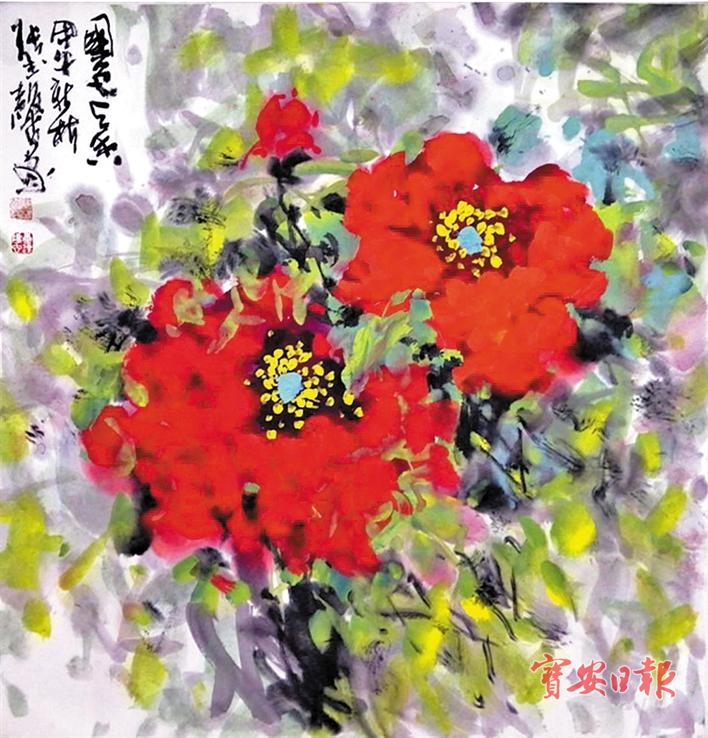 在一雍美术馆展厅内,一幅当代知名书画家张玉馨的作品《国色天香》格外“吸睛”。画作中,一朵朵牡丹花绽放出富贵的光芒,整幅画面构图巧妙,花开艳丽。“整幅画面中,红色牡丹似火,红花绿叶搭配得恰到好处,牡丹有大富大贵之意,寓意和平富贵!”一雍美术馆馆员黄凯玲介绍说:“这刚好符合春节的氛围,在这里也提前预祝宝安市民新年吉祥。”