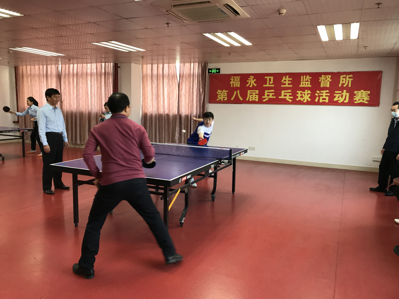 近日,福永卫生监督所第八届职工乒乓球比赛圆满落幕,这也是该所搬迁新业务大楼后连续第八年举办的职工体育竞赛活动。和往届有所不同的是,今年由于部分队员要参加集中隔离观察点驻点、参与新冠肺炎核酸检测以及新冠疫苗接种等疫情防控工作,无法及时赶回参赛,所以今年取消了个人项目,只保留团体比赛项目。而且比赛时间选择在下班后甚至在晚上举行。