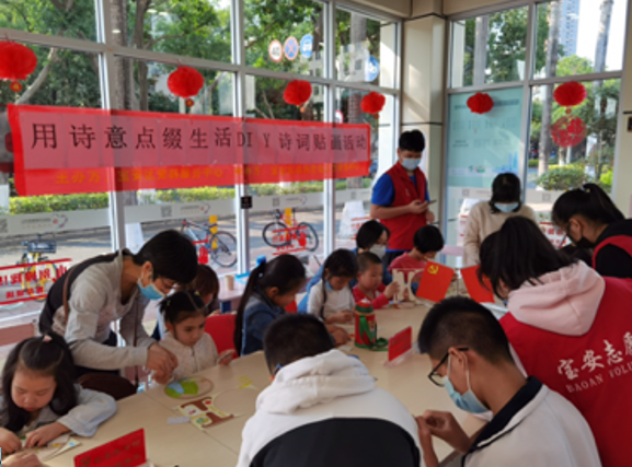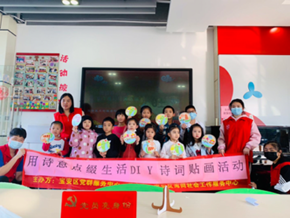 用诗意点缀生活,从诗词中感受万千世界。2月14日大年初三,宝安区党群服务中心党建e站举办了“用诗意点缀生活”DIY诗词贴画活动,以提升学龄儿童对古诗词传统文化的兴趣。活动共招募了15名学龄儿童,希望用贴画的方式让同学们能够记住每一首古诗。