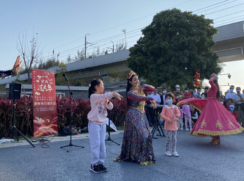 美妙的歌声、热烈的舞蹈、迷人的风情……想近距离欣赏来自新疆的劲歌热舞吗?在西湾红树林公园可以一饱眼福哦!今日(大年初五)下午,西艺·新疆民乐乐队的成员们在此,为市民献上了一场精彩纷呈的“快闪”表演,这也是宝安区文化“百千万”迎新春文化活动之一。