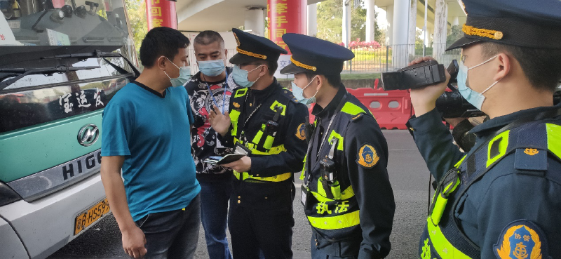 “从去年春运开始,我们就在这里经受着重重考验。去年春运在这里一直坚守到年三十下午6点。刚回到宿舍过完年,年初一下午就接到上级防疫紧急通知协助筹建这里一路之隔的松安检疫点。我们交通执法人员迅速转变为防疫人员,拿起测温仪器,逐车逐人测温登记。”隆葛成表示,相比较去年的春运,2021年春运工作变得从容一些。“不少市民相应号召留深过年,今年春运的人流量较往年有所减少,但是我们一点都不敢松懈,甚至感觉肩上责任更沉重,因为今年春运和防疫是叠加在一起的,特别是我们执法人员要进入客车人群集中的密闭空间执法,在对司乘人员防疫措施进行检查,对卸客转运乘客的安置也要接触大量司乘人员,这对自身防疫要求也很高,之前春运和防疫积累下来的经验就显得尤为珍贵。”隆葛成说。