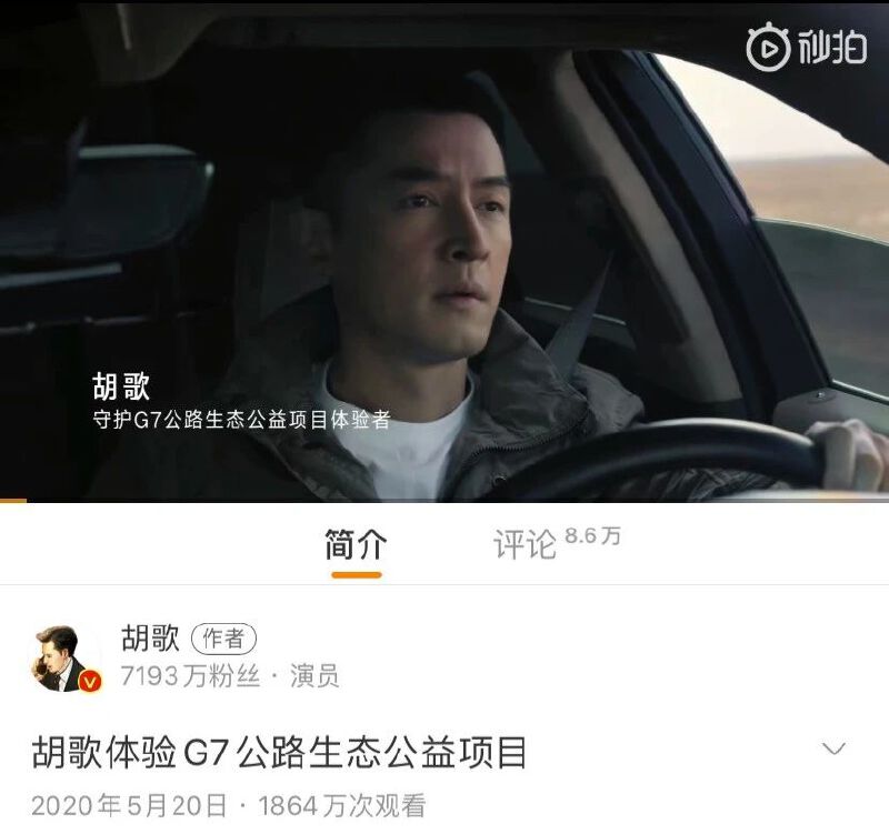 去年,胡歌还参加了守护G7公路的生态公益项目。G7公路是世界上穿越沙漠最长的高速公路,为了改善沿途荒漠化的自然环境,胡歌和公益项目的其他志愿者一同前往内蒙古额济纳旗,参与一年一度的春季种植。