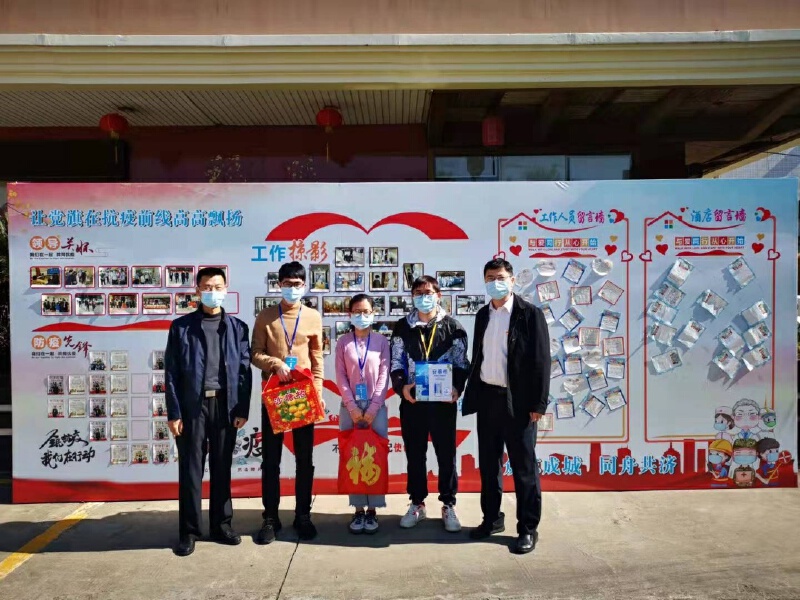 2月12日是大年初一,福永卫生监督所主要负责人陈兵带队看望慰问该所派驻各集中医学观察点的工作人员,向他们送上新春祝福,感谢他们节日期间舍小家为大家,坚守岗位,为疫情防控、人民健康贡献力量。
