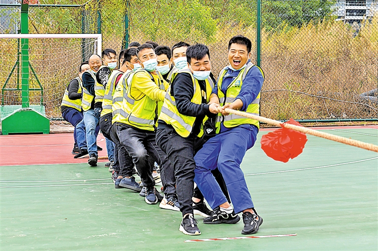 中建科工滨海廊桥项目部组织留深工友们开展拔河比赛。