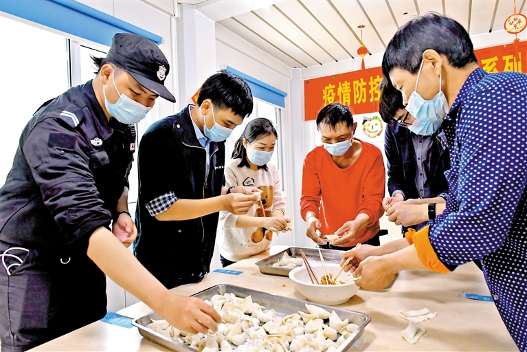 晚上,热腾腾的饺子端上来,工友们热热闹闹吃起来,大家在一起唱歌跳舞看春晚。对于很多人来说,这是一个特殊又难忘的春节。