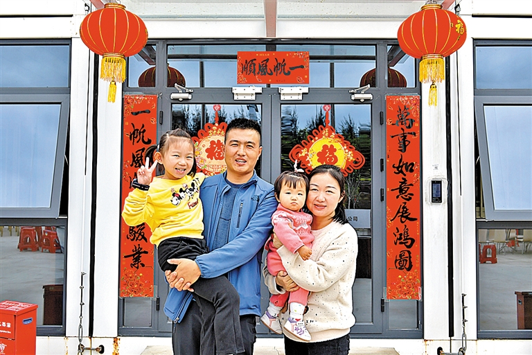 项目执行经理陈永平的妻子和两个女儿第一次陪着他在工地过年。