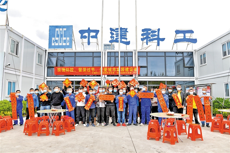 不仅有美食,还有家人。项目执行经理陈永平的妻子和两个女儿第一次陪着他在工地过年。以前春节都要回湖北老家,去年因为疫情,他参加了第三人民医院应急院区建设,连着54天没回家。妻子说,“平时都住工地,一年能待在家的时间连20天都不到,即使回来也是第二天一早就匆匆出门了。”陈永平说,今年很多工友没回家,他就带着家里人来工地一起过年,人多更热闹。