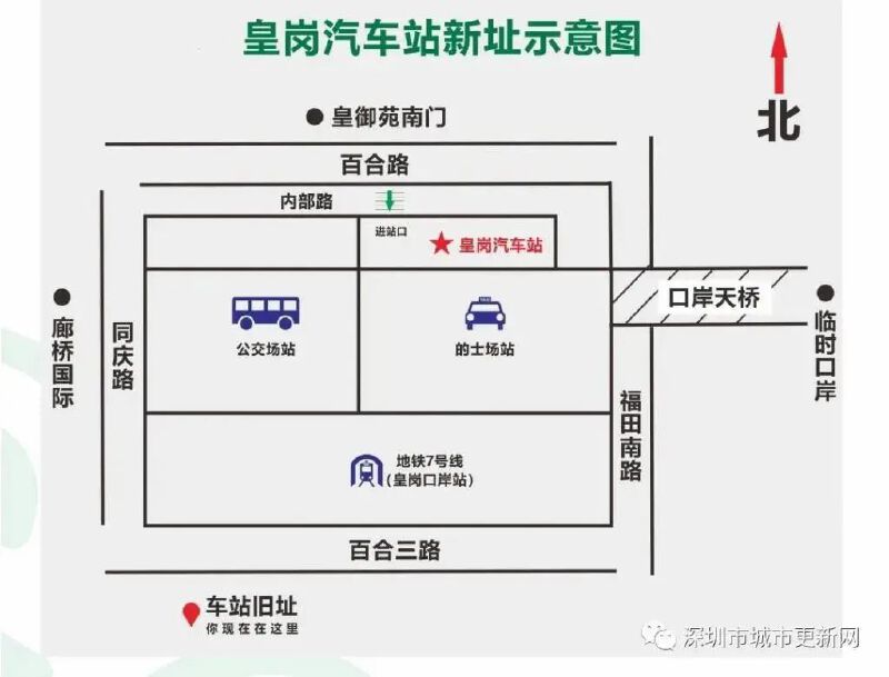 值得注意的是,由于皇岗口岸改造的需要,皇岗汽车站已搬迁至皇岗口岸公交总站东侧新址运营。