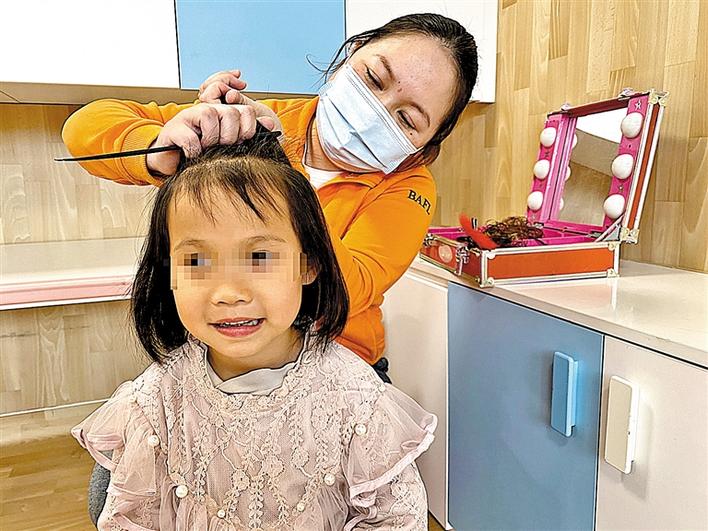 吉静帮社会福利中心的孩子扎头发。