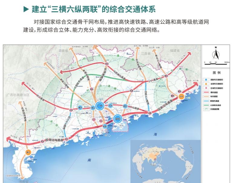 粤港澳大湾区、汕潮都市圈和湛茂都市圈内部,1小时交通圈;粤港澳大湾区至粤东西北地区,2小时交通圈。