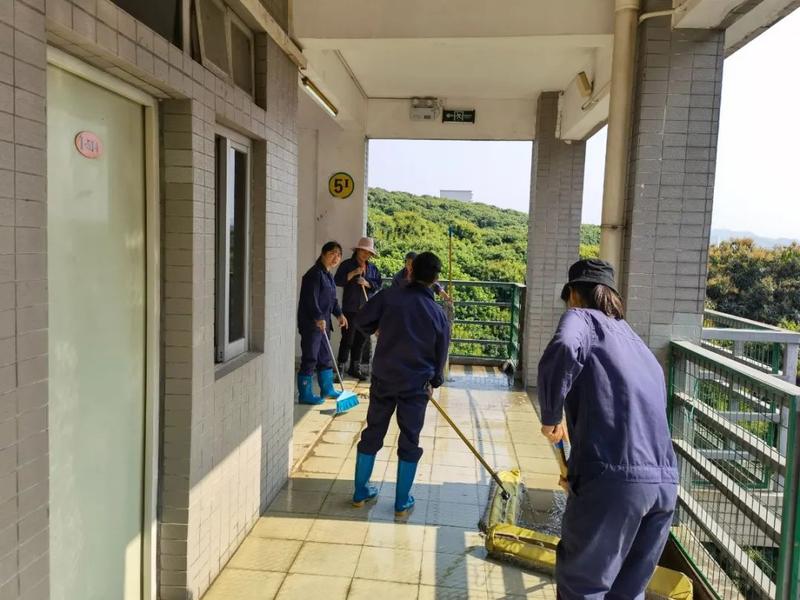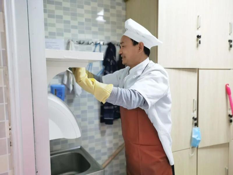 后勤部门的工作人员忙碌在校园的各个角落,他们的工作一丝不苟,他们扫过的走廊、擦过的玻璃一尘不染,整洁温馨的校园环境离不开他们的辛勤付出。