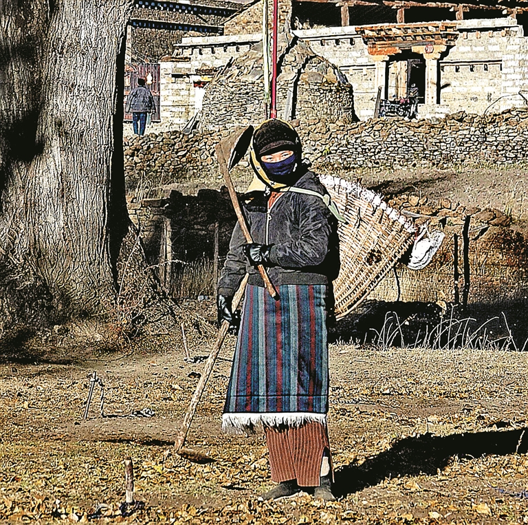 晨起劳作的藏族姑娘。