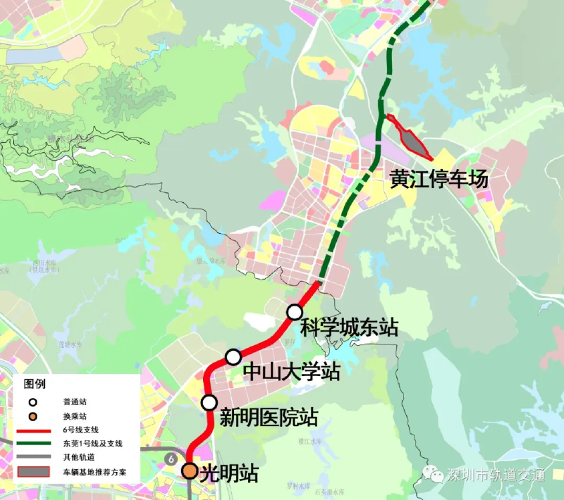 其中光明站为6号线支线与6号线的换乘站。预计2022年建成通车