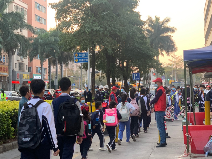 春来学子归。2月22日,松岗街道团工委、义工联组织300余名家长义工在辖区15所中小学,协助开展迎新报到工作,帮助学生有序返校、顺利开学,给师生营造安全的防疫环境,保障校园内外道路交通顺畅。