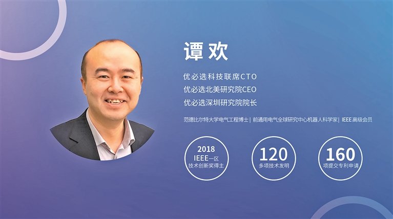 谭欢现任优必选联席首席技术官,兼优必选深圳研究院院长。他作为优必选科研力量的代表人物之一,负责优必选科技的整体技术战略发展和科研创新,并带领跨国团队研发服务机器人学和人工智能的前沿核心技术。