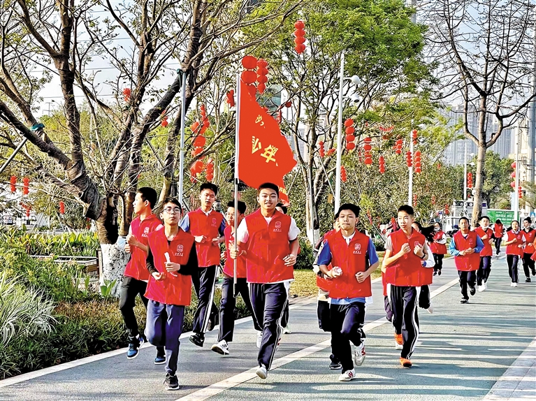 日前,沙井街道蚝乡湖公园多了一群穿着红马甲奔跑的身影,原来是蚝乡湖青少年跑团在进行开年第一跑,50多名青少年义工迎着朝阳一边奔跑一边巡河,践行“志愿护河+健身打卡”这种新的生活方式。
