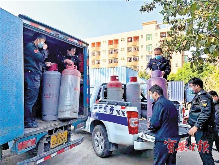 据悉,当天下午2:30时许,该街道执法队员巡查至东环路108号门前时发现路边停放着一辆蓝色箱式大货车,队员靠近车前查看,闻到从车柜内发出一股煤气味,凭借多年执法经验的执法队员判断出疑似是一个“以车代库”黑煤气窝点。由于车柜紧锁,且现场无法联系上车主,执法队员联系辖区交警部门、社区工作站等部门工作人员来到现场进行调查,经核查,现场并未发现当事人相关信息。在交警和社区工作人员的见证下,执法队员依规敲开车锁查看,发现货柜车内堆积着大量规格不同的煤气瓶,且发出一股浓浓的燃气刺鼻味,车内也未有任何的安全指示标志。为严防安全事故的发生,及时消除安全隐患,依据《深圳市燃气条例》的相关法律条文,执法人员依法将“以车代库”储存的煤气瓶全部予以查处。