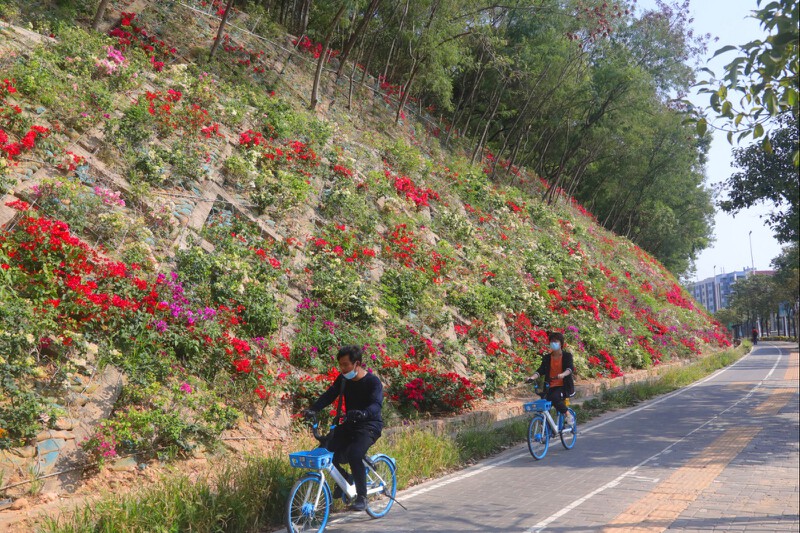107国道福永段经过边坡治理后,成效显现,数百米长的路边花儿竞放