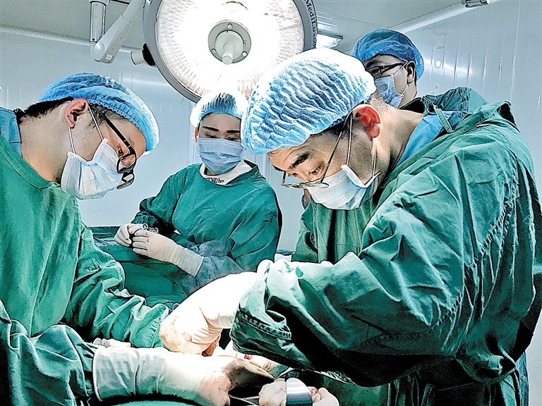 王甘露(右)在为患者做手术。