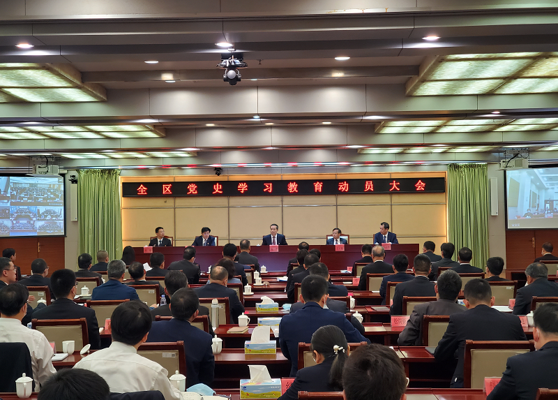 姚任指出,习近平总书记在党史学习教育动员大会上的重要讲话深刻阐述了开展党史学习教育的重大意义,阐明了党史学习教育的重点和工作要求,对党史学习教育进行了全面的动员和部署。党史是最好的教科书,是党员干部的必修课,开展好党史学习教育,是我们当前和今后一个时期的重大政治任务。全区上下要认真学习领会习近平总书记重要讲话精神,切实把思想和行动统一到中央、省委、市委的决策部署上来,增强开展好党史教育的政治自觉、思想自觉和行动自觉,确保党史学习工作有声有色、确有实效。