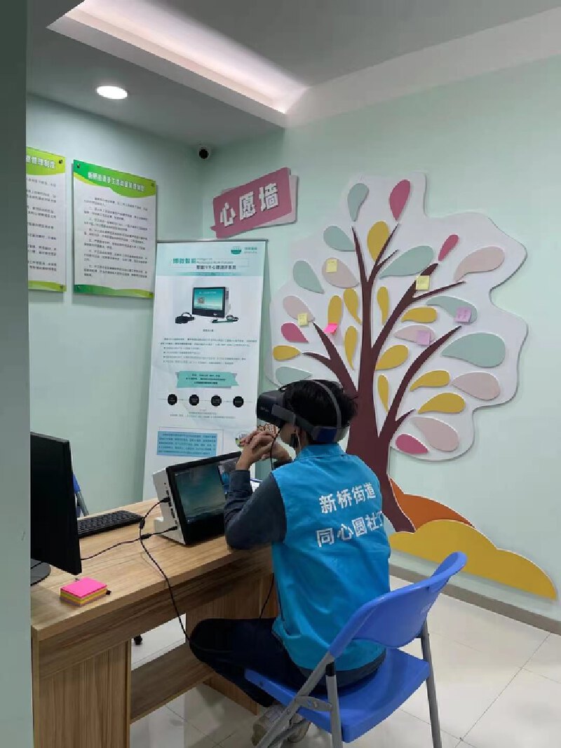 新桥街道精防社工使用智能VR心理测评仪开展测评。