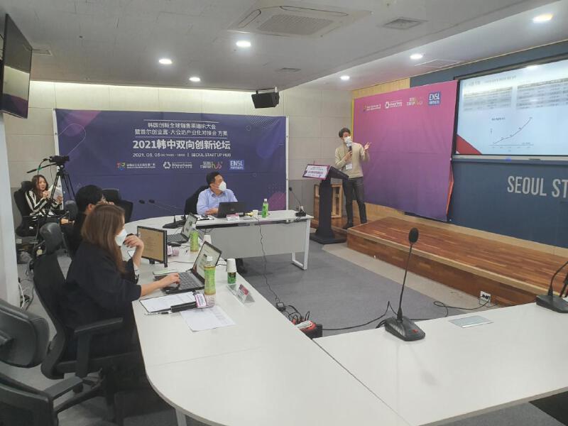 参加此次论坛的9个韩国科技项目涵盖智能人行横道、人工智能呼吸面罩、宠物健康管理、人工智能作物生长控制等产品领域。在活动投售环节中,9家意项目团队代表分别开展线上路演,展示公司、产品及销售市场等情况,最终由3名韩国会场评委和3名中国会场评委共同进行线上投票,选拔出5个优质项目。