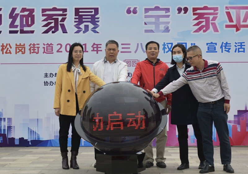 3月3日下午,松岗街道妇联在辖区文化广场开展2021年松岗街道妇联“三八维权周”暨反家暴宣传活动启动仪式。各社区妇联主席、治保主任,网格中心、派出所以及各相关职能部门代表,妇女群众等100余人共同参与活动。