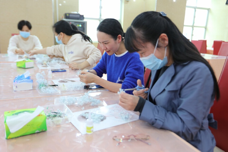 活动开始后,在老师的细心指导下,女职工们将用心、精心的工作风格发挥得淋漓尽致,从聆听讲解、设计配色、选取材料到实际制作,每一环节都彰显了大家的妙手匠心,每一款造型都体现了她们对美的热爱与向往。