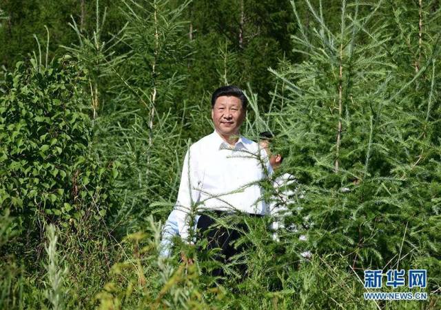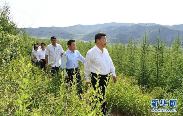 2019年7月15日,中共中央总书记、国家主席、中央军委主席习近平赴内蒙古自治区考察调研。这是习近平在赤峰市喀喇沁旗马鞍山林场了解生态文明建设情况