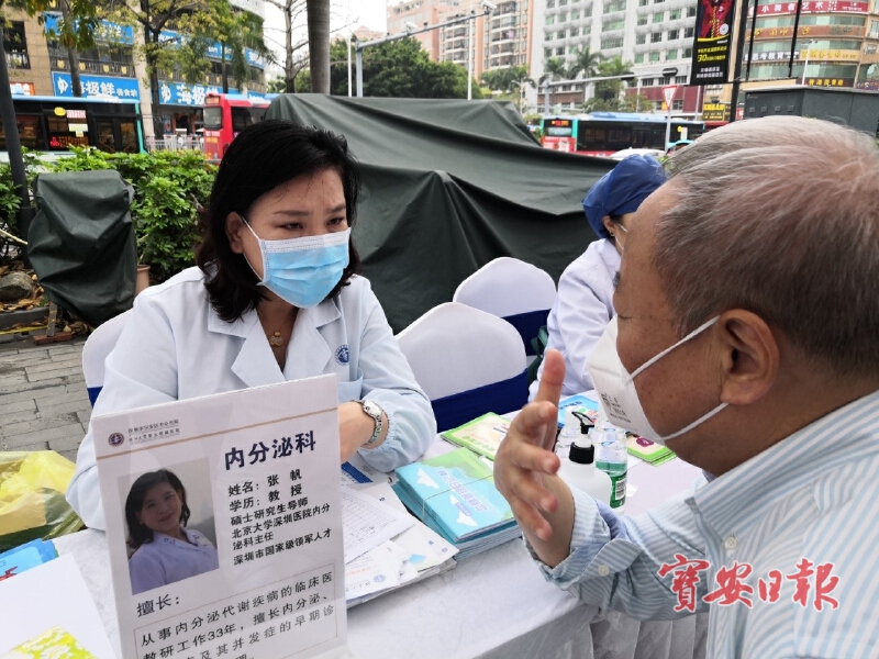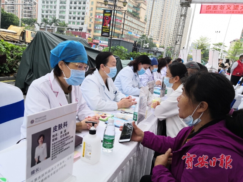义诊现场则由来自全市各医院的20余名专家提供妇产科、皮肤科、眼科、心血管、内分泌、消化等疾病现场咨询活动,宝安区中心医院还设立了家庭医生服务专区,现场免费为居民们提供测血压、测血糖服务,讲解常见病、多发病的预防和治疗保健知识,开展现场建档签约、老年健康保健、慢病管理等健康管理服务,深受群众欢迎,现场咨询群众近两百人。