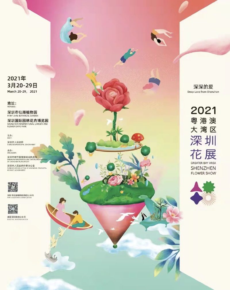 时花开有信,深爱满湾区。踏着春天的脚步,带着浓浓的情谊,市民群众满怀期待的“2021粤港澳大湾区深圳花展”,将于3月20-29日在深圳举行。届时,市民去仙湖植物园需要提前预约,做好个人防疫措施,不扎堆聚集,具体情况请关注美丽深圳、深圳城管、仙湖植物园公众号的消息。