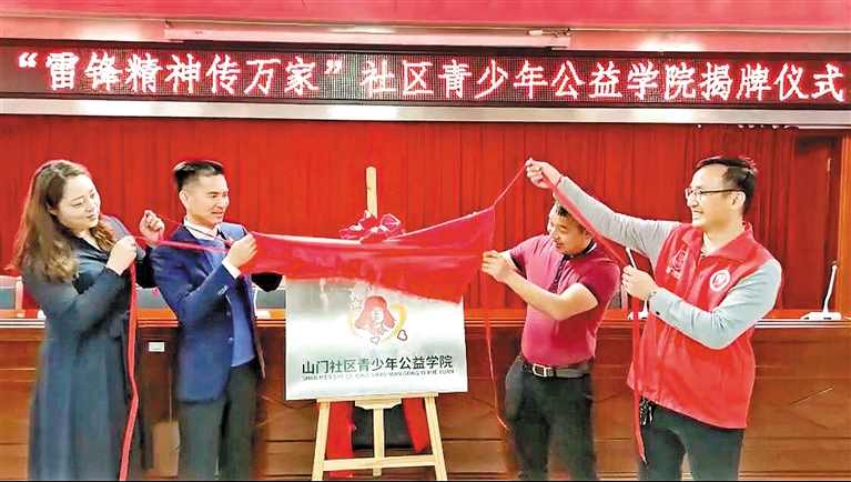 全市首个“雷锋精神传万家”社区青少年公益学院在燕罗街道山门社区正式揭牌。
