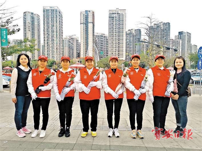 为庆祝“三八”妇女节,新安街道义工联开展了“义路同行,最美是你”三八节送花慰问活动,为坚守在路口、U站、服务大厅等的女性义工送上鲜花。