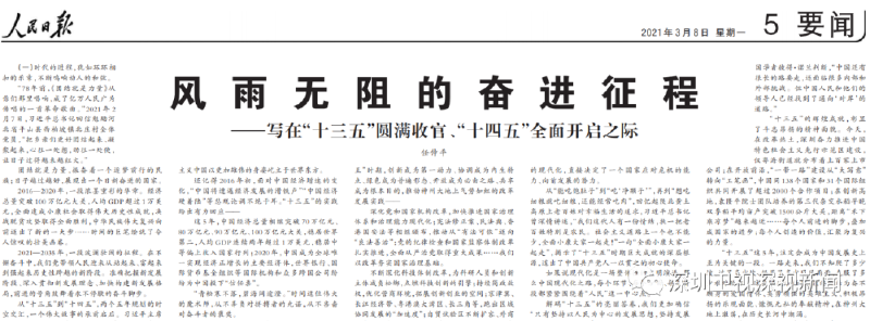 来源:《人民日报》2021年03月08日第05版,原题《风雨无阻的奋进征程——写在“十三五”圆满收官、“十四五”全面开启之际》