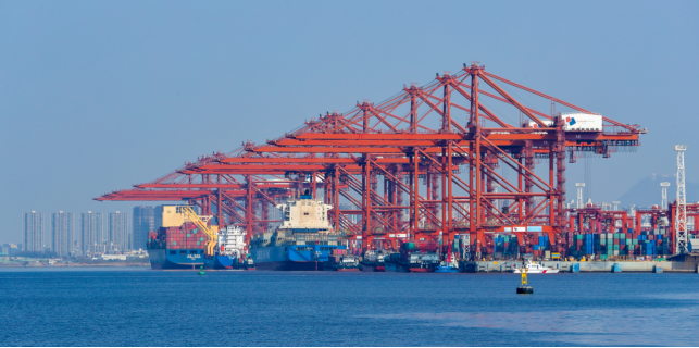 深圳西部的大铲湾码头货运繁忙。